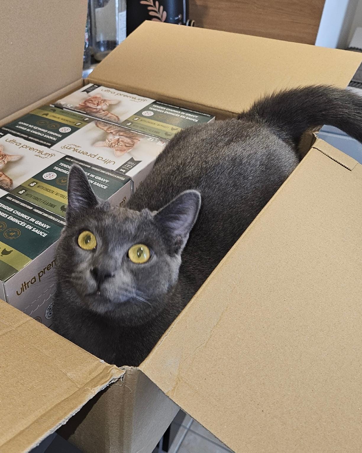 Charly est gris souris avec des yeux jaunes. Il est avenant mais pas facile à attraper.