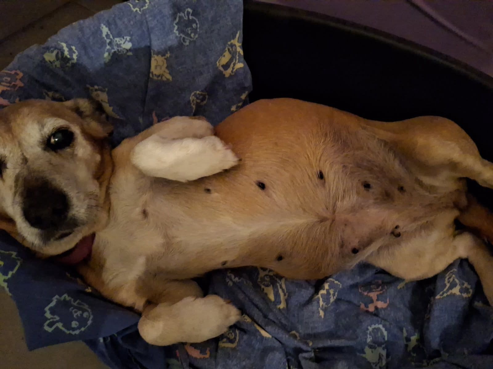 porte un collier noir avec écris dessus mon numéros de téléphone au marqueur bleu