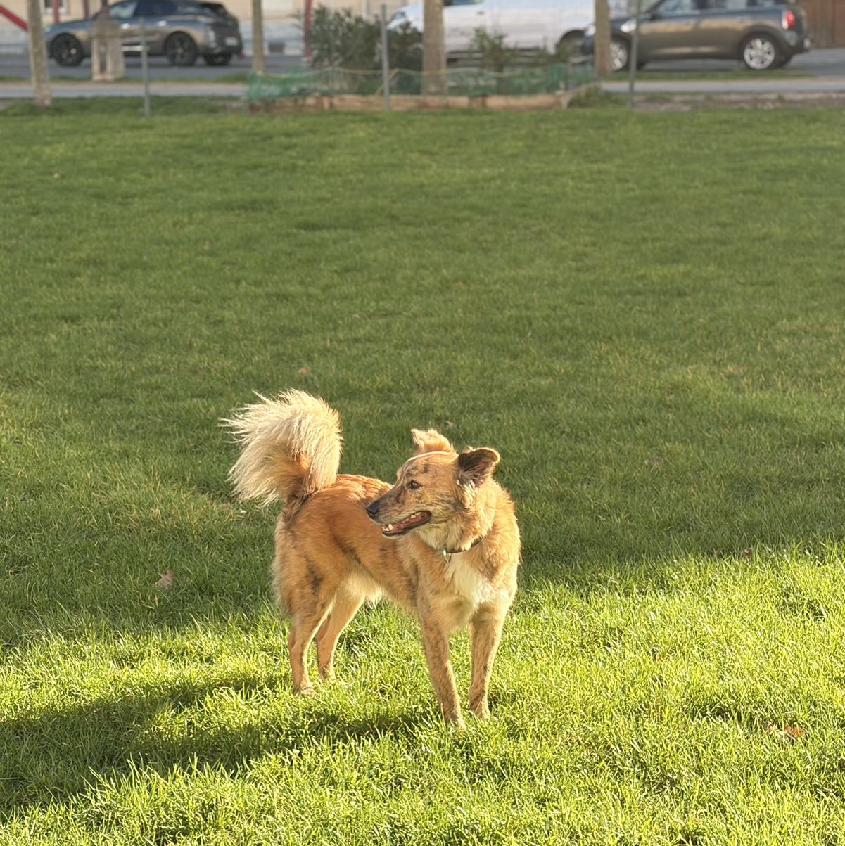 Chien borgne et sans cordes vocales, probablement en panique. Très gentil, répond à son nom.