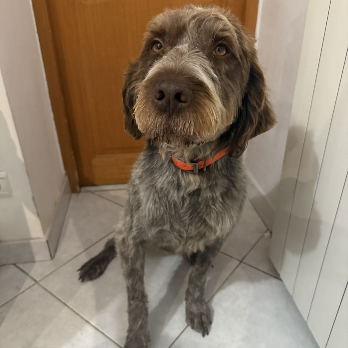 - Porte un collier orange avec notre numéro de téléphone. Chien non agressif, épileptique sous traitement